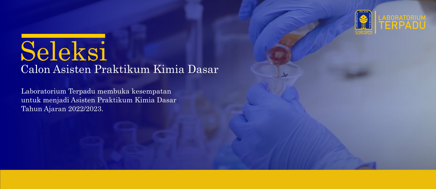 Laboratorium Terpadu UII membuka kesempatan untuk menjadi Asisten Praktikum Mata Praktikum Kimia Dasar dan Kimia Farmasi Dasar pada semester ganjil tahun akademik 2022/2023. Persyaratan kualifikasi terlampir.